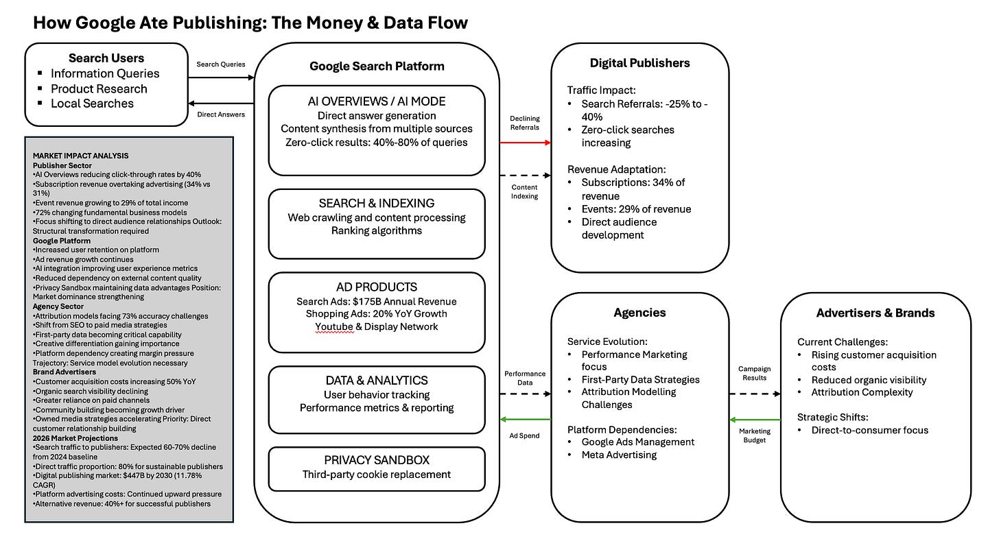 Here's what actually happened: Google didn't betray publishers. They just finished using them. For two decades, publishers provided the training data for what would become AI search. Every article, every headline, every carefully crafted paragraph taught algorithms how to answer questions. Now that education is complete.